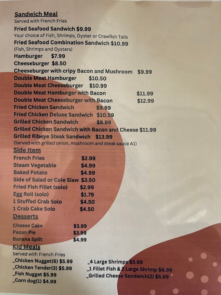 On the fried side, the fried combinations offer flavorful options like stuffed crab, shrimp, and crispy oysters, ensuring a mouthwatering experience. Customers rave about the freshness and generous portions, making it clear that Mr. Eat’s believes in cooking from scratch, avoiding pre-packaged meals.